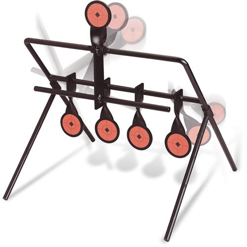 The Gallery Resetting Target lets you experience all the fun of knocking down targets without walking downrange or pulling cords to reset them. Hit all four of the hanging targets with your.22 caliber rimfire. Then shoot at the resetting target and all four targets drop back down for another round of shooting fun. This rugged target is designed especially for your.22 rimfire.The solid steel target is durable yet portable. Just set it on the ground and start shooting. Features twist designed paddles with no welds to break. A lot of fun!